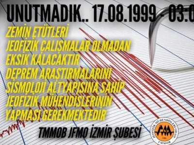 TMMOB Jeofizik Mühendisleri Odası İzmir Şubesi olarak 17 Ağustos 1999 Marmara Depreminin 21. yıl dönümünde Bornova, Çiğli, Karabağlar, Gaziemir, Konak ve Karşıyaka Belediyelerinin bilboardlarında farkındalık karikatürleri ile vatandaşlarımızı bilinçlendirme çalışmaları yapılmıştır.