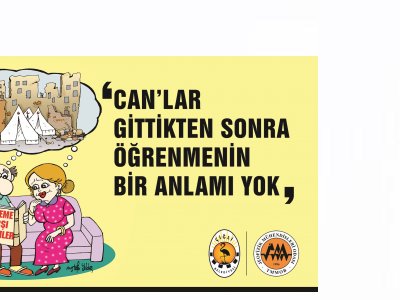 TMMOB Jeofizik Mühendisleri Odası İzmir Şubesi olarak 17 Ağustos haftasında Bornova, Gaziemir, Çiğli, Buca, Bayraklı, Karabağlar, Konak ve Karşıyaka Belediyelerinin billboardlarında farkındalık karikatürleri ile vatandaşlarımızı bilinçlendirme çalışmaları yapılmıştır.