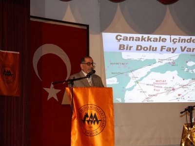 Odamız Yönetim Kurulu Başkanı Sayın Şevket DEMİRBAŞ‘ın yaptığı açılış konuşmasından sonra söz alan Sayın Prof. Dr. Ahmet ERCAN, Sayın Prof. Dr. Semih TEZCAN, Sayın Prof. Dr. Uğur KAYNAK, Sayın Yrd. Doç. Dr. Oğuz GÜNDOĞDU, Sayın Yrd. Doç. Dr. Tolga BEKLER ve JFMO Çanakkale İl Temsilcisi Yüksek Jeofizik Mühendisi Sayın Ali AYGÜN olası Çanakkale Depremi, Çanakkale Depremselliği, depremde risk altında bulunan bölgeler ve yerel uygulamalar konusunda geniş kapsamlı bilgiler vererek halkımızı ve meslektaşlarımızı aydınlatmışlardır.
