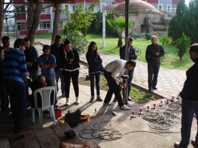 Doç. Dr. Ünal Dikmen tarafından verilen iki günlük kursun ilk günü sabah Sismik Yöntemlerden Aktif ve Pasif Kaynaklı Yüzey Dalgası Yöntemleri anlatıldı. Öğleden sonra kursiyerler ile birlikte arazi çalışması yapıldı.