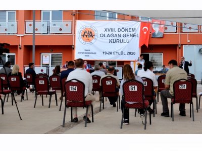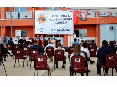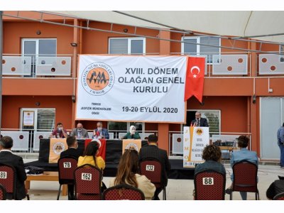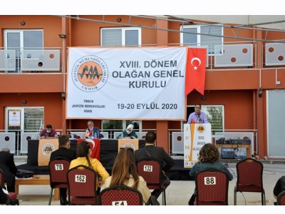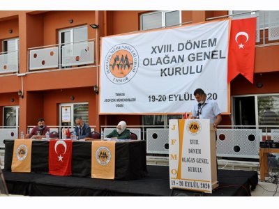 TMMOB Jeofizik Mühendisleri Odası XVIII. Dönem Olağan Genel Kurul Toplantısı; COVID-19 pandemisi nedeniyle delegelerimizin güvenli bir ortamda toplantıya katılımlarını sağlamak amacıyla, 19 Eylül 2020 Cumartesi günü, TMMOB Öğrenci Evi ve Sosyal Tesisleri bahçesinde açık havada gerçekleştirildi.