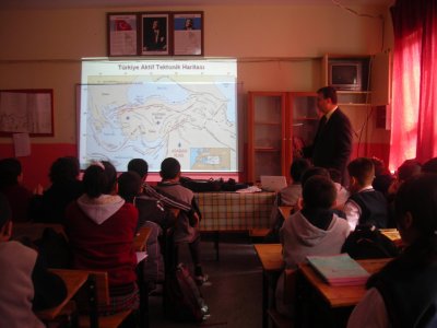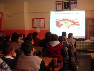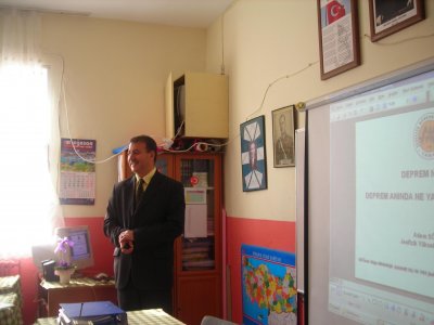 09.03.2011 DEPREM SEMİNERİ Evrenesoğlu İlköğretim Okulunun 28 Şubat Sivil Savunma günü nedeniyle deprem konulu seminer verilmesi talebi üzerine Yönetim Kurulu Üyesi Sn. Adem Sömer tarafından ilköğretim öğrencilerine deprem konulu bir sunum yapılmıştır.