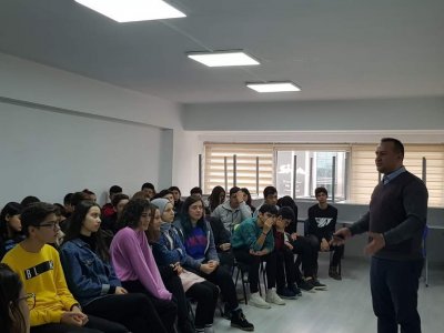 İZMİR SİMYA KOLEJİ`NDE MESLEK TANITIM VE TEMAL AFET BİLİNCİ SUNUMU YAPILDI