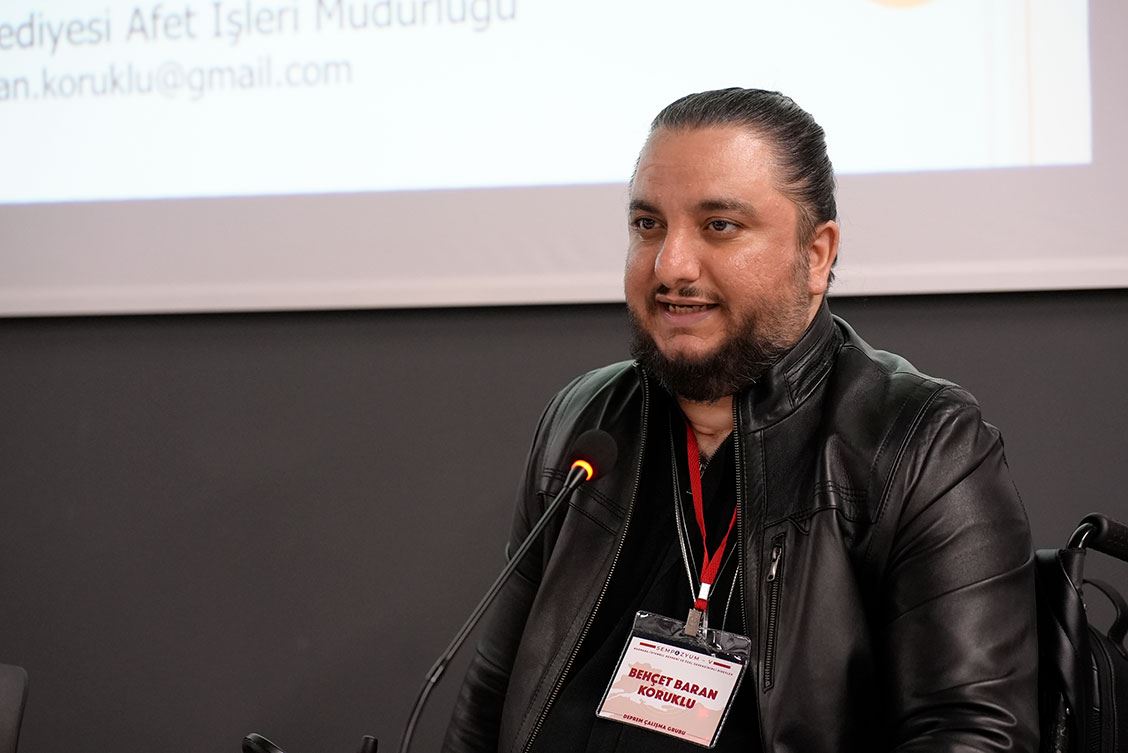 Sempozyumda konuşmacı olan Şube Yönetim Kurulu üyemiz Baran KORUKLU, “Depremde Dezavantajlılık; Afete Hazırlıkta Engellileri Unutma” sunumunu gerçekleştirmiştir.
