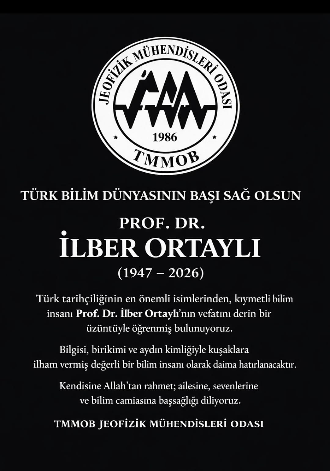 PROF. DR. İLBER ORTAYLI'YI KAYBETTİK.