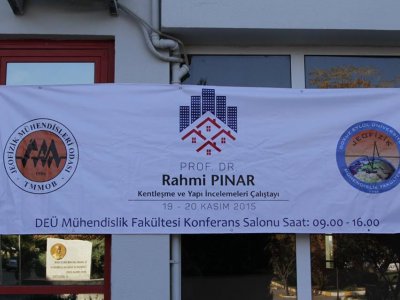 TMMOB Jeofizik Mühendisleri Odası İzmir Şubesi, DEÜ Jeofizik Mühendisliği Bölümü tarafından yapılan, Mimarlar Odası İzmir Şubesi ve Şehir Plancıları Odası İzmir Şubesi tarafından desteklenen, "PROF. DR. RAHMİ PINAR KENTLEŞME VE YAPI İNCELEMELERİ ÇALIŞTAYI" 19 - 20 Kasım 2015 tarihlerinde İzmir DEÜ Tınaztepe Kampüsü Mühendislik Fakültesi Konferans Salonunda gerçekleştirildi.