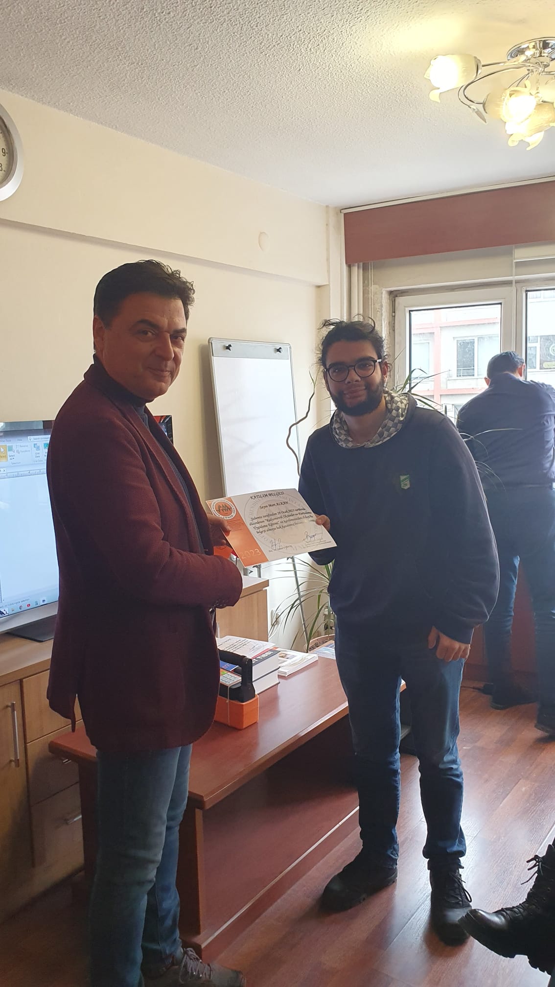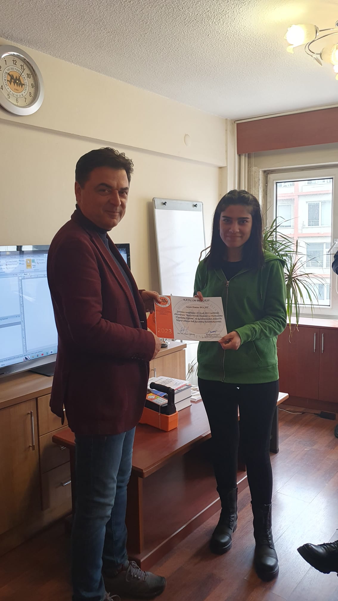 Kursun ardından Doç. Dr. Osman UYANIK "Dinamik Yöntemlerle Zemin Sıvılaşması" ve "Jeofizik ve Klasik Yöntemlerle Yapı İncelemeleri (Yapı Jeofiziği) kitaplarını katılımcılar için imzalamıştır.