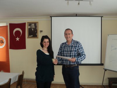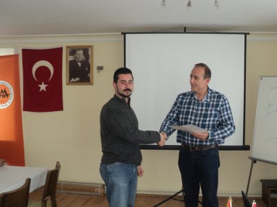 Kurs sonunda JFMO Yönetim Kurulu Üyesi Sn. Asaf Timur Kutllu, Sn. US‘a eğitmen olarak Oda‘mıza yaptığı katkılardan dolayı Meslek İçi Eğitim Belgesi‘ni takdim etmiştir. Ardından kursa katılanlara Sn. Us tarafından kurs katılım belgeleri verilmiştir.