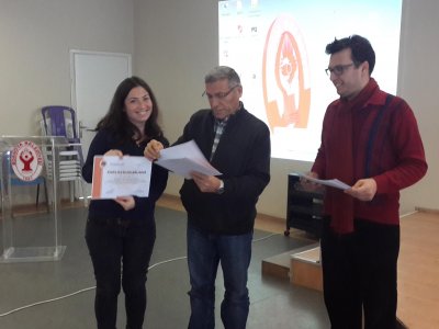 Kurs sonunda Cafer Cıkcıka katkılarından dolayı teşekkür belgesi, katılımcılara katılım belgleri verilmiştir.