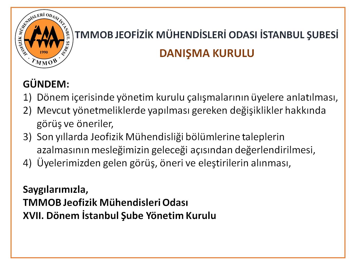 Mesleki gündem doğrultusundaki son gelişmeler hakkında görüş ve önerilerin konuşulacağı, örgütlülüğün en önemli unsurlarından biri olan Şubemiz Danışma Kurulu Toplantısı 16 Ekim 2022 Pazar günü saat 14:00‘da Şubemizde yapılacaktır.