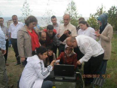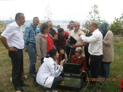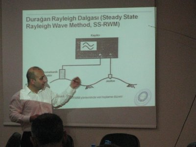 25.09.2012 ŞUBEMİZDE MASW VE REMI İLE ZEMİN PARAMETRELERİNİN BELİRLENMESİ KURSU YAPILDI Kursun İkinci günü arazide alınan MASW ve REMİ verileri kursiyerler ile bire bir değerlendirilmiştir.