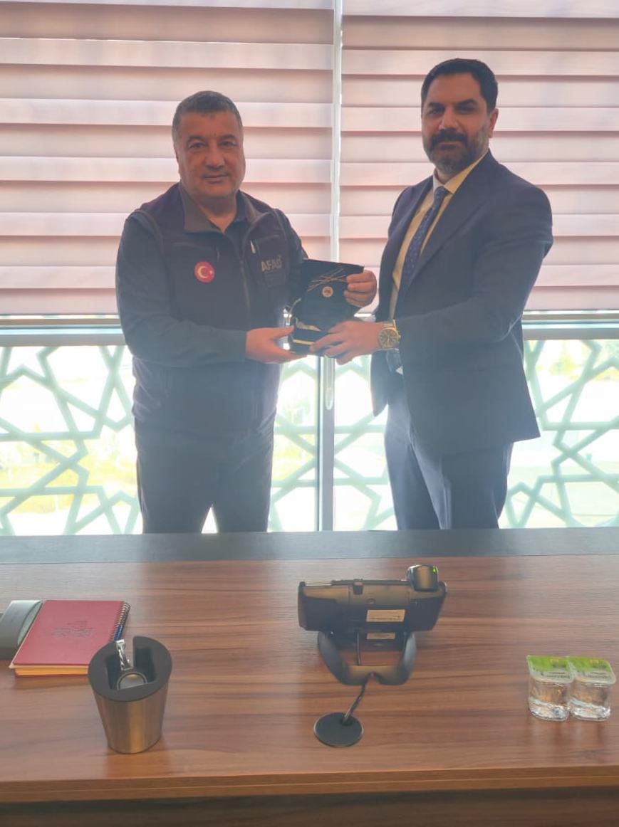 T.C. İçişleri Bakanlığı Afet ve Acil Durum Yönetimi Başkanlığı (AFAD) Deprem ve Risk Azaltma Genel Müdürü Sayın Prof. Dr. Orhan Tatar Beyefendi ile Acil Yardım ve Altyapı Hasarları Daire Başkanı Sayın Ayhan Işık Beyefendiyi makamlarında ziyaret ettik.