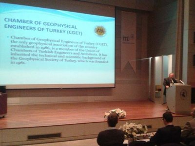 Çalıştayda, Jeofizik Mühendisleri Odası adına İstanbul Üniversitesi Öğretim görevlilerinden ve Odamız yönetim kurulu üyelerinden Doç.Dr.Ferhat ÖZÇEP ve Yrd.Doç.Dr. Savaş KARABULUT sunum yapmışlardır.